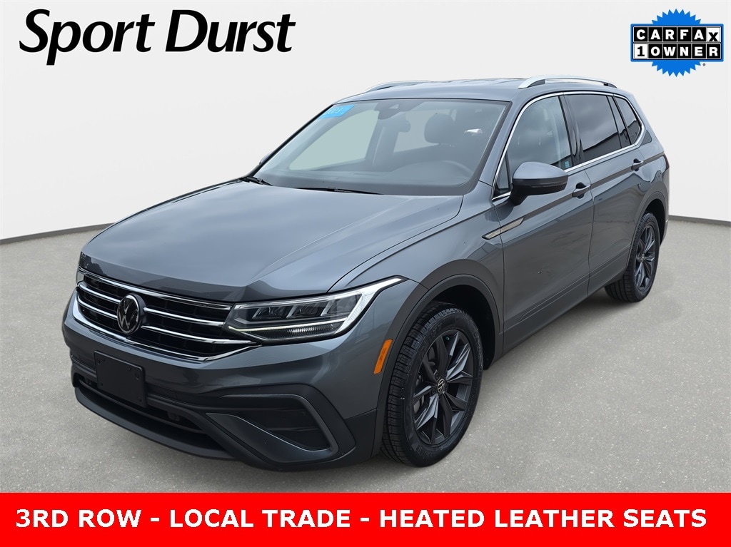 2023 Volkswagen Tiguan 2.0T SE Gray FWD 8-Speed Automatic with Tiptronic 2.0L TSI DOHC *THIRD ROW SEATS*, *SIRIUS XM*, *REMAINDER OF FACTORY WARRANTY*, *POWER PACKAGE*, *ONE OWNER...NO ACCIDENTS REPORTED*, *LOCAL TRADE*, *LEATHER*, *HEATED SEATS*, *BLUETOOTH*, *BACKUP CAMERA*, *ALUMINUM ALLOY WHEELS*, 3rd row seats: bench, Emergency communication system: VW Car-Net Safe & Secure 5-year, Exterior Parking Camera Rear, Heated Front Comfort Seats, Perforated V-Tex Leatherette Seating Surfaces, Power Liftgate, Rain sensing wipers, Remote keyless entry, Security system, Steering wheel mounted audio controls, Wheels: 18" Dark Graphite Painted 10-Spoke Alloy.