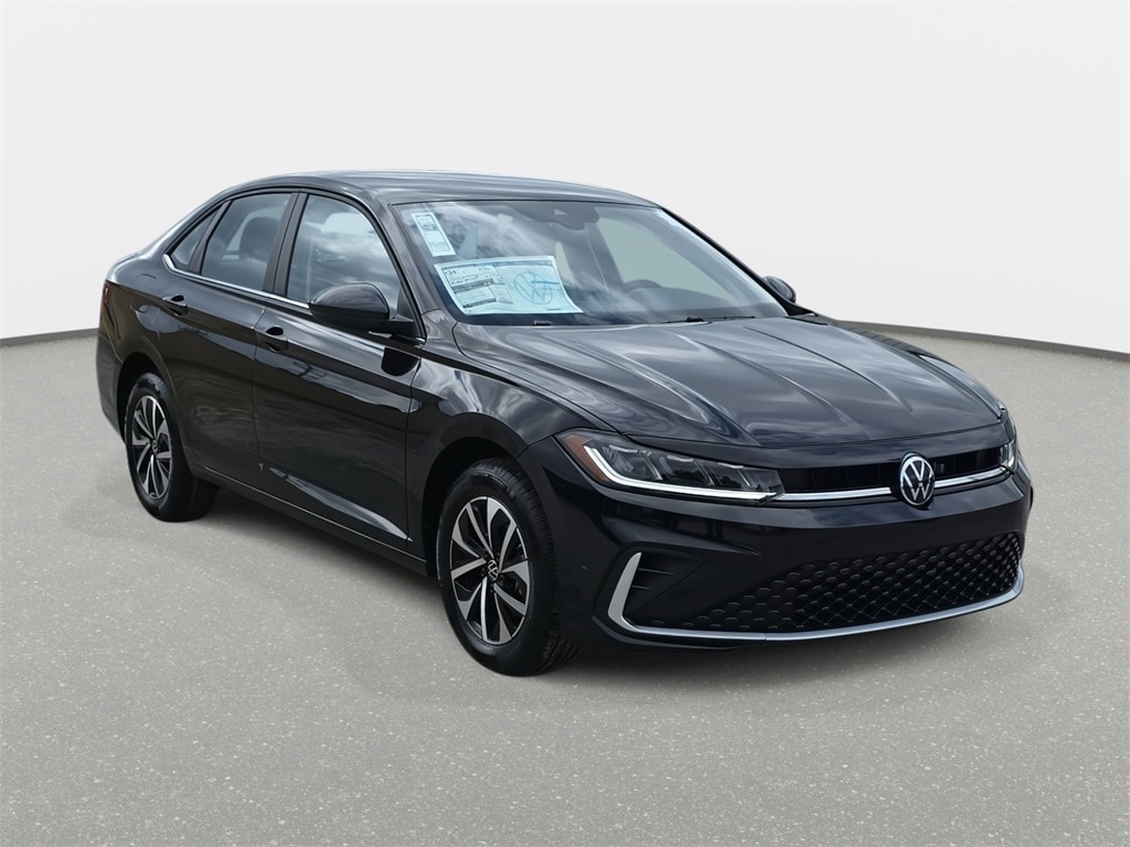 Black 2026 Volkswagen Jetta 1.5T S FWD 8-Speed Automatic with Tiptronic 1.5L I-4 DI DOHC Turbocharged Black Cloth.