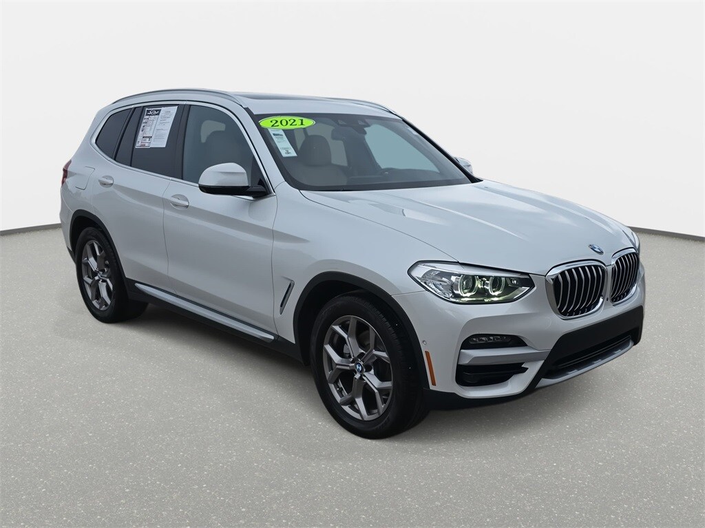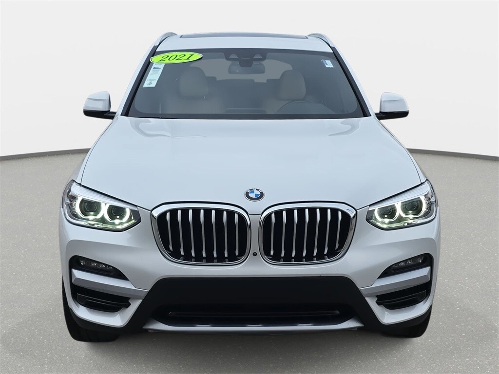 2021 BMW X3 sDrive30i Mineral White Metallic RWD 8-Speed Automatic Sport 2.0L I4 TwinPower Turbo *SUNROOF*, *POWER PACKAGE*, *NAVIGATION*, *LOCAL TRADE*, *LEATHER*, *HEATED SEATS*, *CONVENIENCE PACKAGE*, *BLUETOOTH*, *BACKUP CAMERA*, *APPLE CARPLAY/ANDROID AUTO*, *ALUMINUM ALLOY WHEELS*, 8-Speed Automatic Sport, Active Park Distance Control, Apple CarPlay Compatibility, Comfort Access Keyless Entry, Connected Package Plus, Convenience Package (ZC2), Emergency communication system: BMW Assist eCall, Exterior Parking Camera Rear, Front fog lights, Heated Front Seats, Hi-Fi Sound System, Memory seat, Navigation System, Panoramic Moonroof, Parking Assistance Package, Parking Assistant Plus, Power Front Seats, Power Liftgate, Rain sensing wipers, Rear-View Camera, Remote keyless entry, Security system, Sport Bucket Seats, Steering wheel mounted audio controls, Surround View w/3D View, Wheels: 19" x 7.5" Y-Spoke (Style 693).