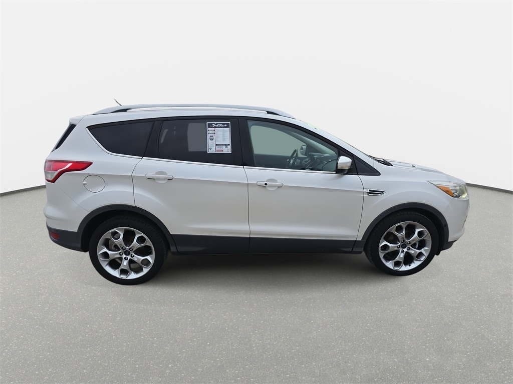 2015 Ford Escape Titanium White Platinum Clearcoat Metallic FWD 6-Speed Automatic EcoBoost 1.6L I4 GTDi DOHC Turbocharged VCT *SUNROOF*, *POWER PACKAGE*, *ONE OWNER...NO ACCIDENTS REPORTED*, *LEATHER*, *HEATED SEATS*, *BLUETOOTH*, *BACKUP CAMERA*, *ALUMINUM ALLOY WHEELS*, Active Park Assist, Bi-Xenon High-Intensity Discharge Headlamps, BLIS w/Cross Traffic Alert, Exterior Parking Camera Rear, Heated front seats, Heated Leather-Trimmed Buckets w/60/40 Rear Seat, Memory seat, Power Liftgate, Power Panorama Roof, Rain-Sensing Wipers, Rear Parking Sensors, Remote keyless entry, Security system, Steering wheel mounted audio controls, SYNC w/MyFord Touch & SYNC Services, Titanium Technology Package, Wheels: 19" Alloy Luster Nickel.