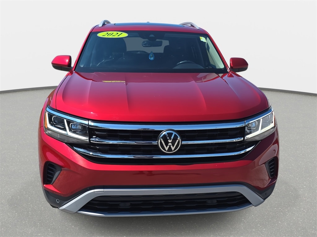 2021 Volkswagen Atlas SEL Aurora Red Metallic AWD 8-Speed Automatic with Tiptronic 3.6L V6 *TRAILER HITCH*, *THIRD ROW SEATS*, *SUNROOF*, *SIRIUS XM*, *POWER PACKAGE*, *ONE OWNER...NO ACCIDENTS REPORTED*, *NAVIGATION*, *LOCAL TRADE*, *LEATHER*, *HOMELINK*, *HEATED SEATS*, *CONVENIENCE PACKAGE*, *BLUETOOTH*, *BACKUP CAMERA*, *ALUMINUM ALLOY WHEELS*, 2nd-Row Dual Captain's Chairs, 3rd row seats: split-bench, 4-Wheel Disc Brakes, 6 Speakers, ABS brakes, AM/FM radio: SiriusXM, Auto High-beam Headlights, Automatic temperature control, Dual front impact airbags, Dual front side impact airbags, Emergency communication system: VW Car-Net services (capabilities require enrollment or subscription), Exterior Parking Camera Rear, Frameless Self-Dimming Rearview Mirror, Front fog lights, Heated Comfort Front Bucket Seats, Heated front seats, Heated steering wheel, MDO Package (Captain's Chairs), Memory seat, Navigation System, Occupant sensing airbag, Overhead airbag, Perforated V-Tex Leatherette Seating Surfaces, Power Liftgate, Power moonroof, Privacy Cover, Radio: MIB3 Discover Media w/8" Touchscreen Navigation, Rain sensing wipers, Remote keyless entry, Rubber Mats Kit - Captain's Chairs, Security system, Steering wheel mounted audio controls, Wheels: 20" 5-Spoke Silver Alloy.