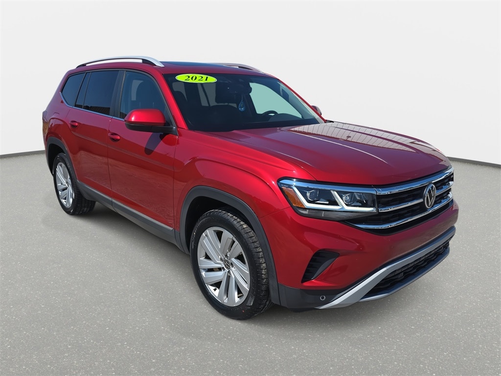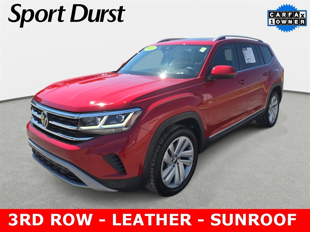 Come See This 2021 Aurora Red Metallic Volkswagen Atlas SEL AWD and many more at Sport Durst Automotive today!